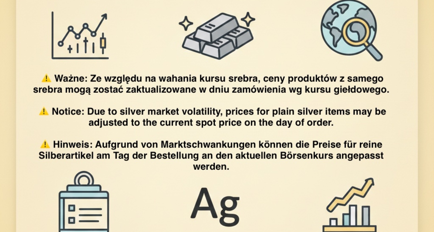 Wichtige Preisinformation Sehr geehrte Kunden, aufgrund der dynamischen Preisentwicklung am Silbermarkt können die Preise auf unserer Plattform derzeit nicht immer in Echtzeit aktualisiert werden. Bei Bestellungen von reinen Silberwaren (ohne...mehr »