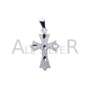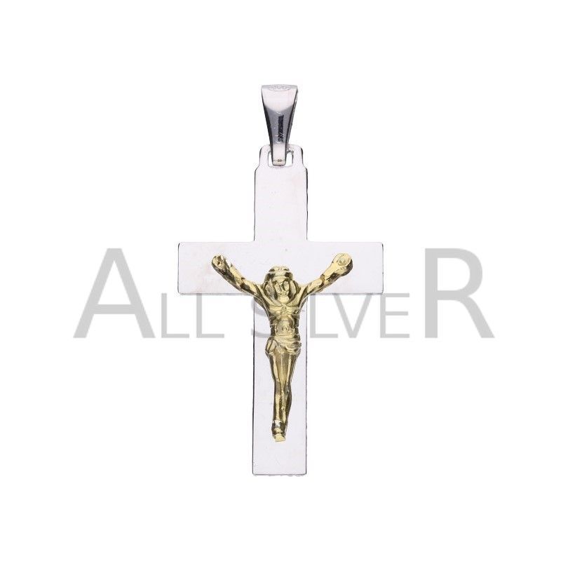 KREUZ MIT BILD, KOMBINATION AUS 925er SILBER, RHODINIERT UND VERGOLDET, HÖHE OHNE KRAWATTE, CA. 3,5 CM.