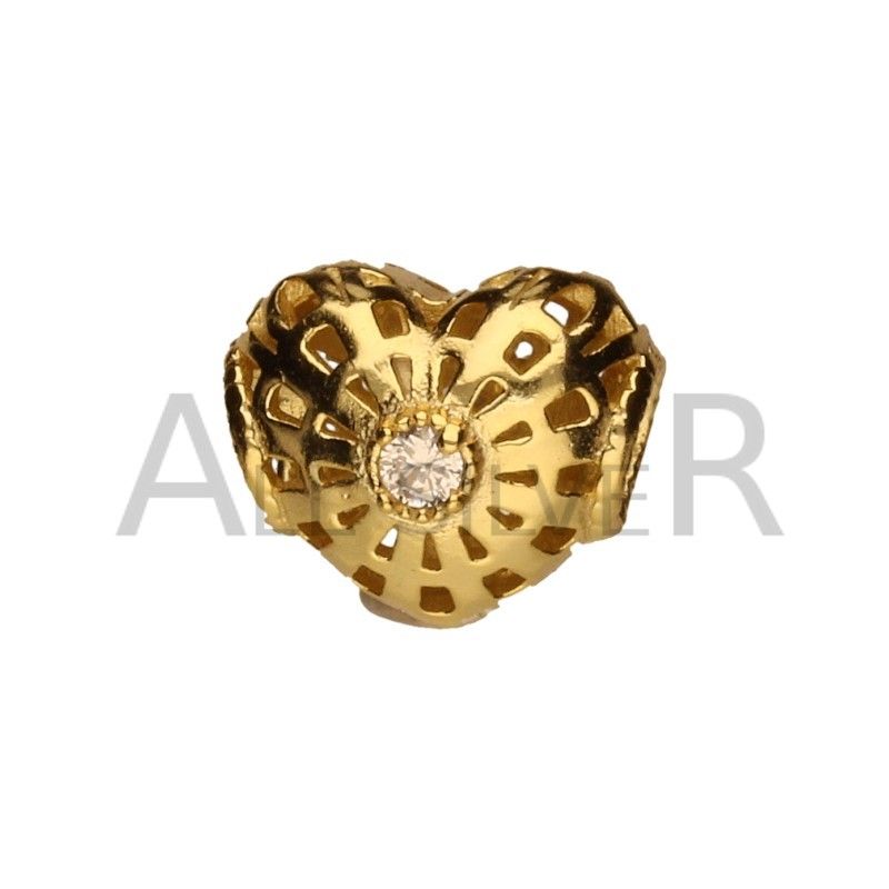 PERLENANHÄNGER GEEIGNET FÜR MODULARE ARMBÄNDER MIT EINEM DURCHMESSER VON 3 MM, 925 SILBER VERGOLDET MIT 24 KARAT GOLD, WEISSER ZIRKONIA, HERZ.