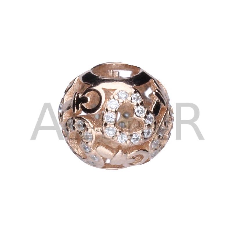 ANHÄNGER MIT DURCHGESCHLOSSENEN PERLEN, PASST ZU MODULARARMBÄNDERN MIT EINEM DURCHMESSER VON 3 MM, 925 SILBER, ROSA VERGOLDET, WEISSER ZIRKONIA, HERZEN.