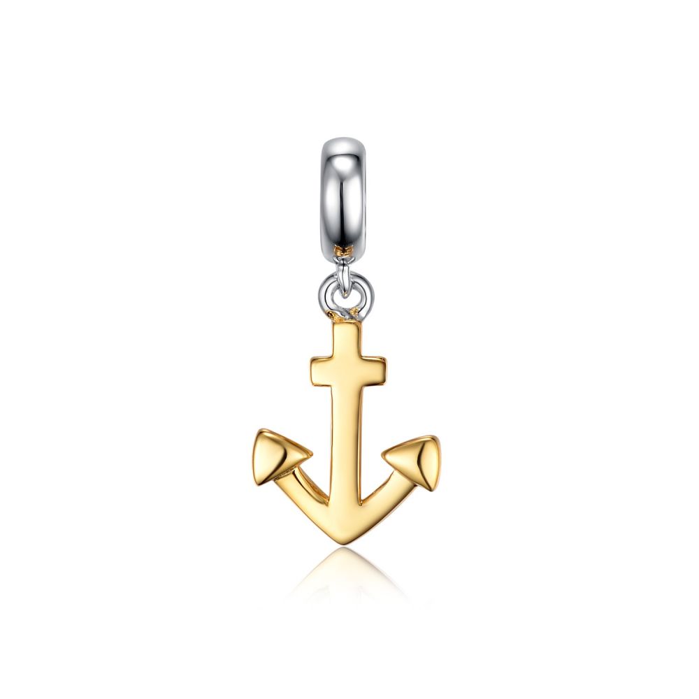 PERLENANHÄNGER FÜR EIN MODULARES ARMBAND, DURCHMESSER 3 MM, 925 SILBER, RHODINIERT UND VERGOLDET MIT 24 KARAT GOLD, ANKER.