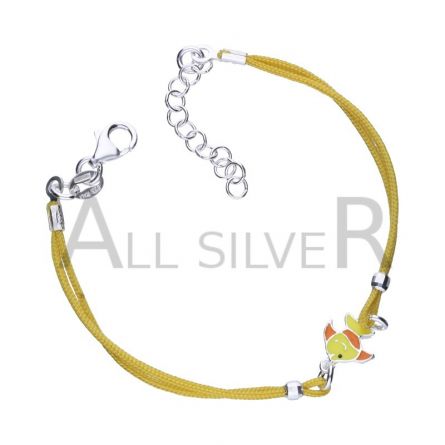 ARMBAND MIT FISCH, ELEMENTE AUS 925er SILBER, GELBE SCHMUCKBAND, BUNTE EMAILLE, 15 CM + 3 CM VERLÄNGERUNG.