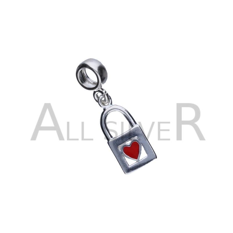 PERLENANHÄNGER PASST ZU MODULARARMBÄNDERN MIT EINEM DURCHMESSER VON 3 MM, 925 SILBER, ROTE EMAILLE, HERZ, VORHÄNGESCHLOSS.