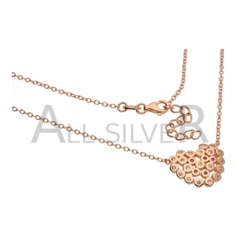 925 SILBER HALSKETTE, ROSA VERGOLDET, LÄNGE 42 CM + 3 CM VERLÄNGERUNG, WEISSER ZIRKONIA und ROSA. HERZ