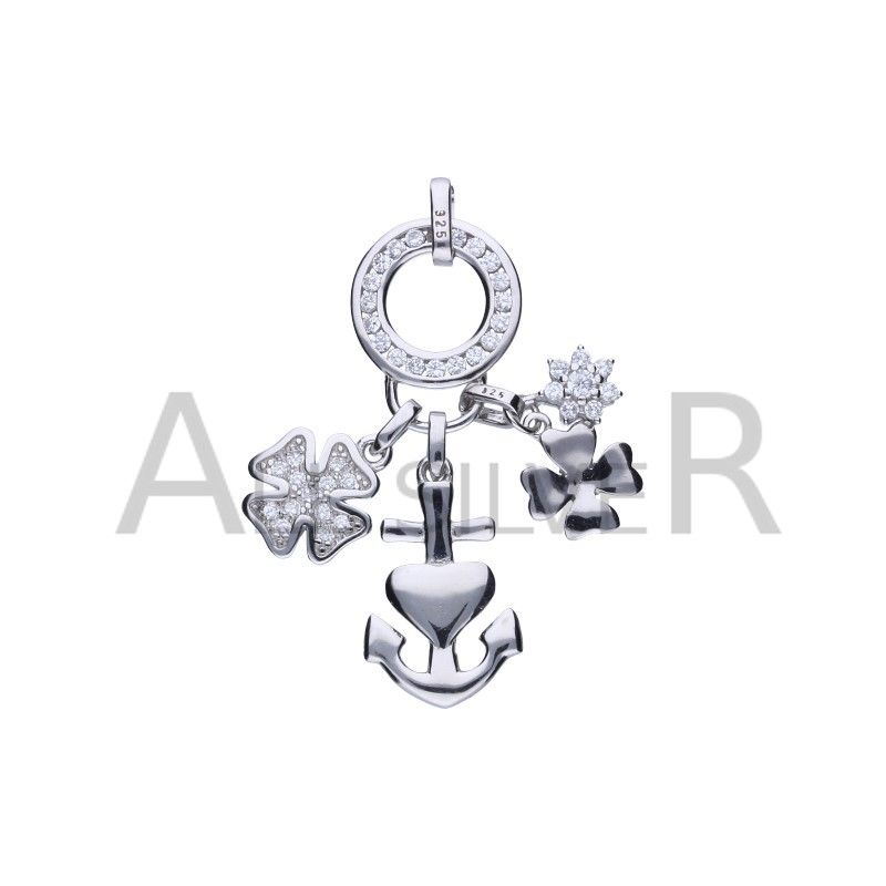 VIER ANHÄNGER, 925 SILBER, RHODINIERT, WEISSER ZIRKONIA, KLEEBLÜTE, BLUME SOWIE EIN ELEMENT, DAS GLAUBE, HOFFNUNG, LIEBE SYMBOLISIERT.