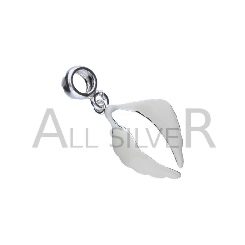 PERLEN-ARMBANDANHÄNGER, 925er SILBER, ENGELSFLÜGEL-MOTIV, ÜBERZOGEN MIT WEISSER EMAILLE, ABMESSUNGEN 15 MM X 22 MM. Passend für modulare Standardarmbänder mit einem Durchmesser von 3 mm.