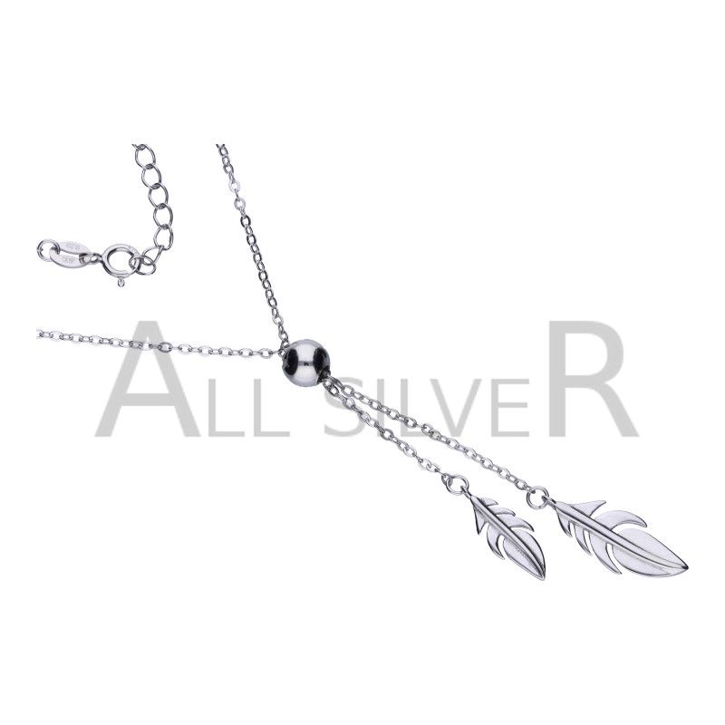 KRAWATTE HALSKETTE, 925 SILBER, RHODINIERT, LÄNGE 42 CM + 3 CM VERLÄNGERUNG, BLÄTTER PLUS GLATTE KUGEL.