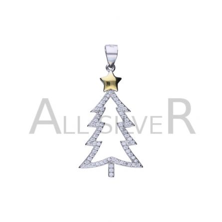 ANHÄNGER AUS 925er SILBER, rhodiniert und vergoldet, weiße Zirkone, Weihnachtsbaum, Höhe ohne Anhänger: ca. 2,8 cm.