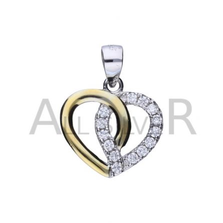 ANHÄNGER AUS 925er SILBER, RHODINIERT UND VERGOLDET MIT 24 KARAT GOLD, WEISSEM ZIRKONIA, HERZGRÖSSE 16 mm x 15 mm.