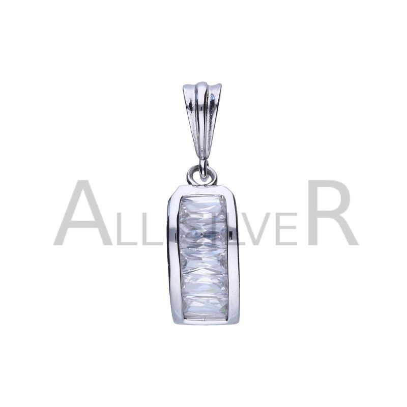 ANHÄNGER AUS SILBER 925, RHODINIERT, HÖHE OHNE KRAWATTE CA. 1,5 CM, WEISSER ZIRKONIA IM BAGUETTE-TYP.