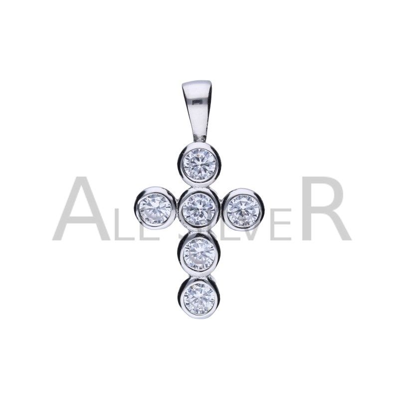 KREUZANHÄNGER, 925 SILBER RHODINIERT, ABMESSUNGEN OHNE KRAWATTE CA. 1,9CM x 1,4CM, WEISSER ZIRKONIA.