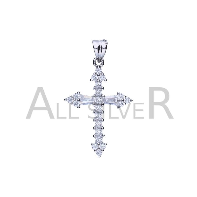 KREUZANHÄNGER, 925 SILBER RHODINIERT, ABMESSUNGEN OHNE KRAWATTE CA. 2,5CM x 2,0CM, WEISSER ZIRKONIA.
