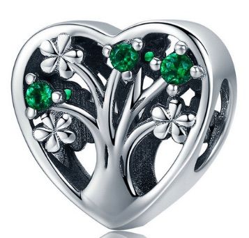 PERLENANHÄNGER GEEIGNET FÜR MODULARE ARMBÄNDER MIT EINEM DURCHMESSER VON 3 MM, 925 SILBER, RHODINIERT, GRÜNER ZIRKONIA, HERZ, LEBENSBAUM.