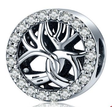 ANHÄNGER MIT DURCHGESCHLOSSENEN PERLEN, GEEIGNET FÜR MODULARE ARMBÄNDER MIT EINEM DURCHMESSER VON 3 MM, 925 SILBER, RHODINIERT, WEISSER ZIRKONIA, LEBENSBAUM.