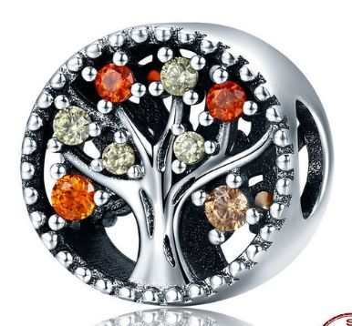 DURCHGEBUNDENER ANHÄNGER FÜR EIN MODULARES PERLENARMBAND, 3 MM DURCHMESSER, 925 SILBER, RHODINIERT, BUNTES ZIRKONIA, LEBENSBAUM.