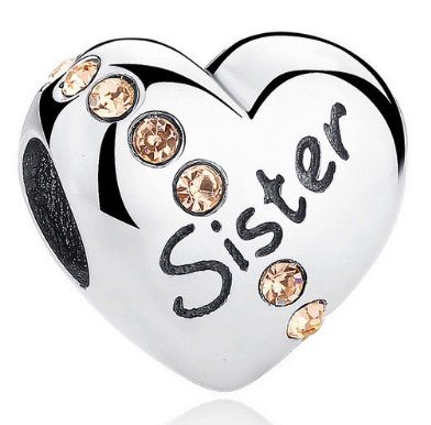 DER PERLEN-ARMBANDANHÄNGER PASST ZU MODULARARMBÄNDERN MIT EINEM DURCHMESSER VON 3 MM, 925 SILBER, RHODINIERTE EMAILLE, ZIRKONIA, HERZ MIT SCHWESTER-INSCHRIFT.