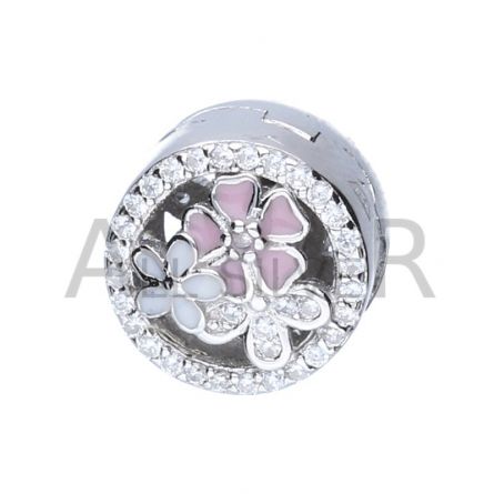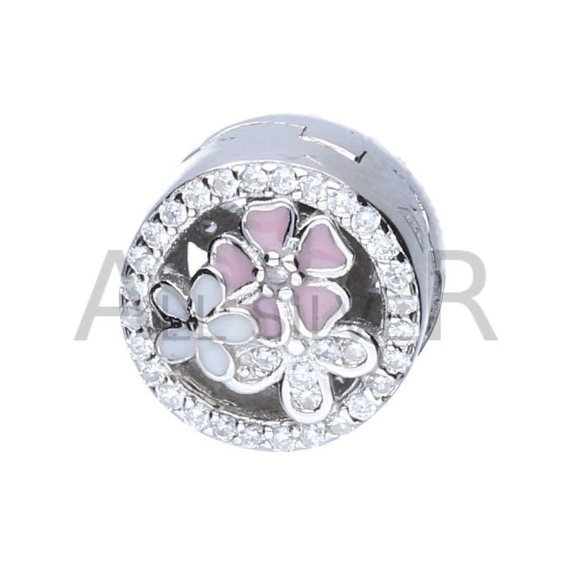 SICHERHEITSPERLEN-ARMBANDANHÄNGER, ÖFFNBAR, 925 SILBER, RHODINIERT, WEISSER ZIRKONIA, EMAILLE, BLUMEN, PASST ZU MODULARARMBÄNDERN MIT EINEM DURCHMESSER VON 3 MM.