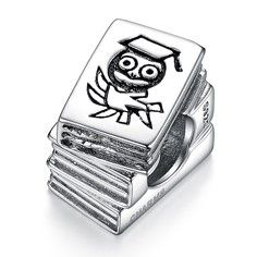 ANHÄNGER PASST ZU MODULAR-PERLENARMBÄNDERN MIT EINEM DURCHMESSER VON 3 MM, 925 SILBER, RHODINIERT, EULE, BÜCHER.