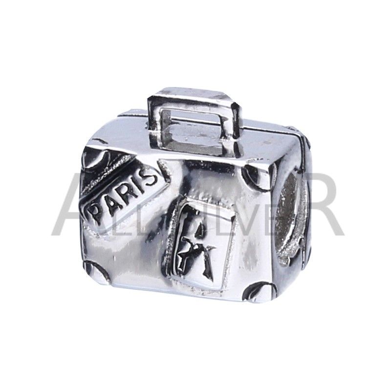 PERLENANHÄNGER GEEIGNET FÜR MODULARE ARMBÄNDER MIT EINEM DURCHMESSER VON 3 mm, 925 SILBER, RHODIUMBESCHICHTET, KOFFER, TRAVELLER.