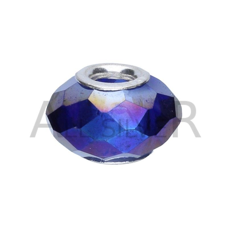 PERLENARTIGER ARMBANDANHÄNGER, FACETTIERTE GLASPERLE, OPALISIEREND IN SCHATTEN VON LILA UND MARINEBLAU, 925 SILBER.