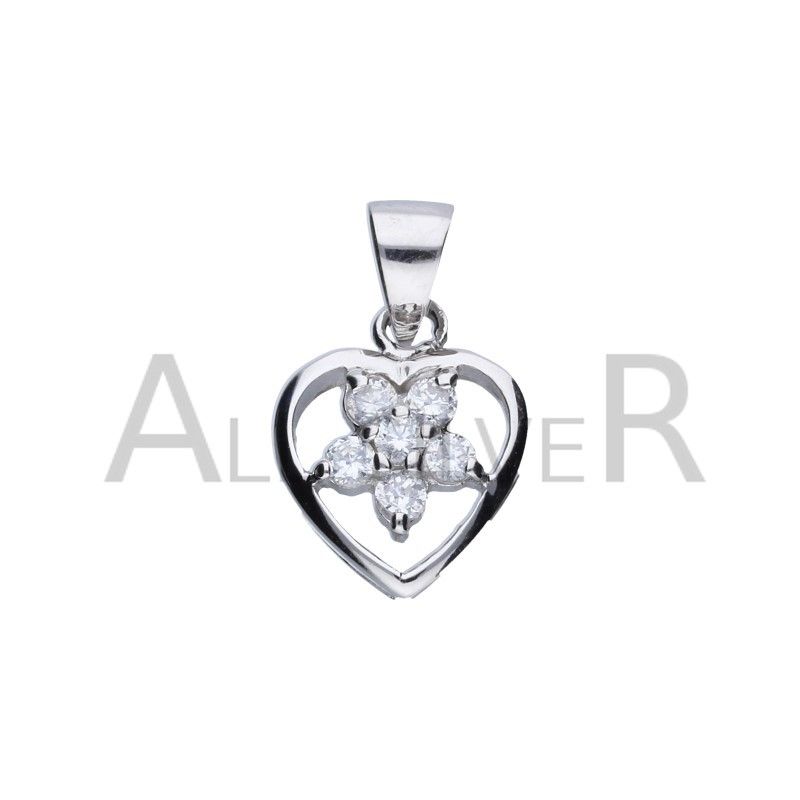 HERZANHÄNGER MIT EINER BLUME, 925 SILBER RHODINIERT, ABMESSUNGEN OHNE BAND 12MM X 12MM, WEISSER ZIRKONIA.