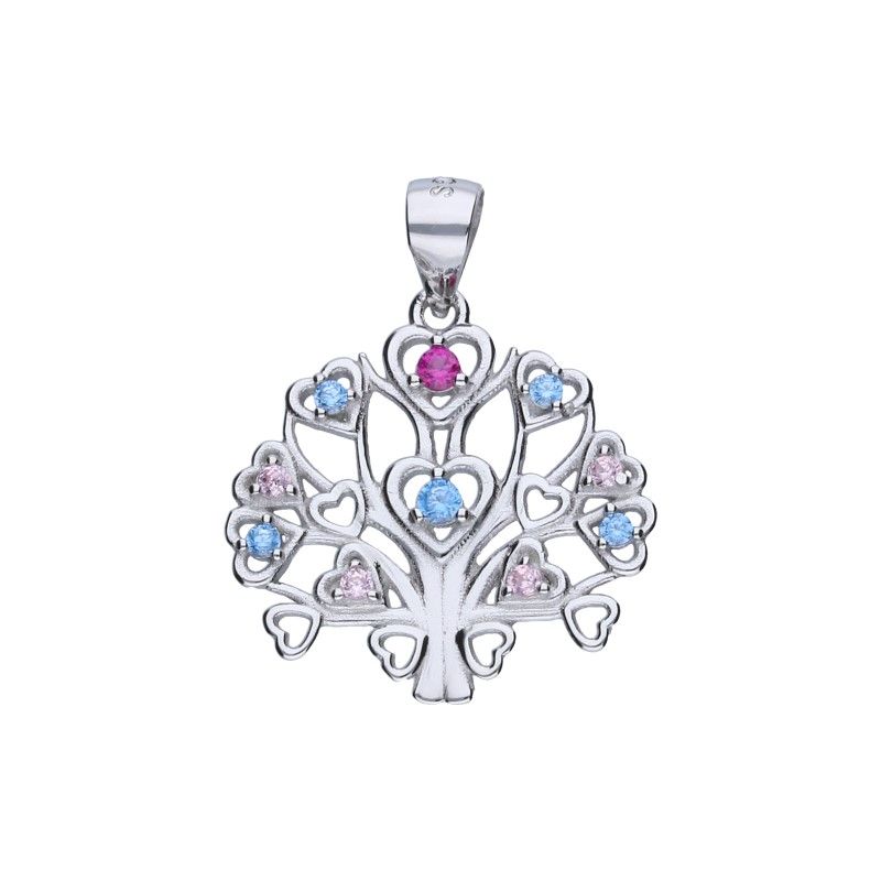 ANHÄNGER MIT DURCHBRUCH, 925 SILBER, RHODINIERT, ABMESSUNGEN OHNE BAND 17 mm X 19 mm, LEBENSBAUM, BUNTES ZIRKONIA.