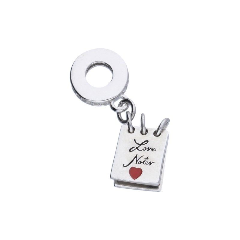 ANHÄNGER PASST FÜR MODULARE BEAD-ARMBÄNDER MIT EINEM DURCHMESSER VON 3 MM, 925 SILBER, RHODINIERT, TAGEBUCH, ROTE EMAILLE, HERZ, WEISSES ZIRKONIA.