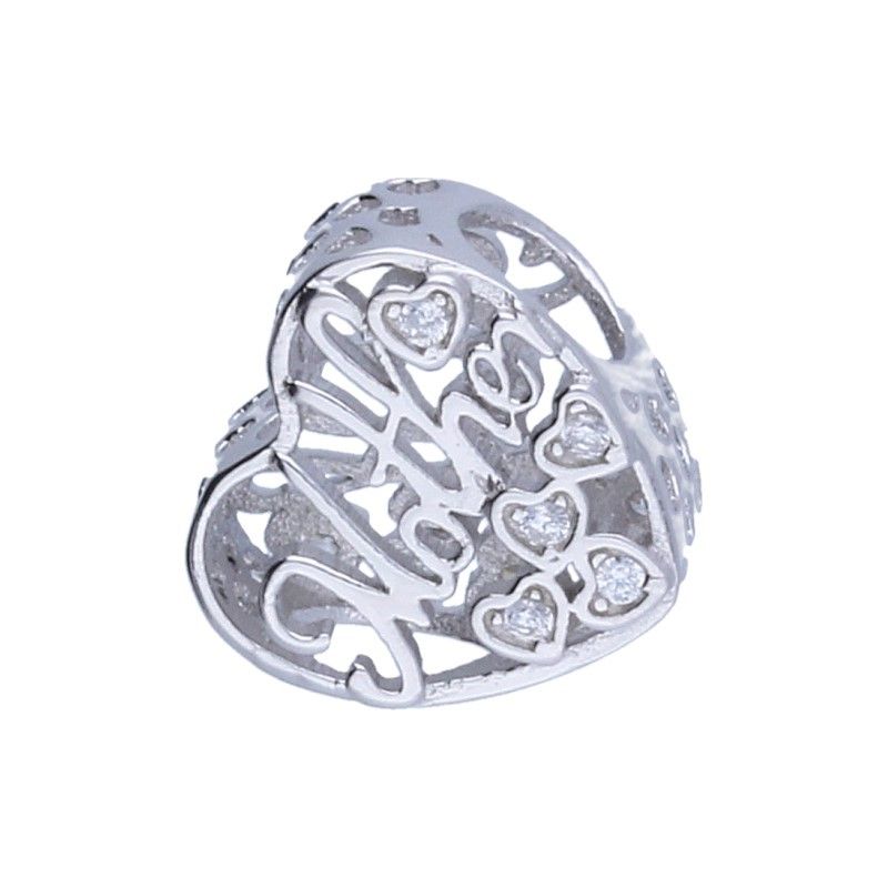 PERLENANHÄNGER, GEEIGNET FÜR MODULARE ARMBÄNDER MIT EINEM DURCHMESSER VON 3 MM, 925 SILBER, RHODIUMBESCHICHTET, WEISSER ZIRKONIA, DURCHGESTELLTES HERZ MIT DER AUFSCHRIFT MUTTER.