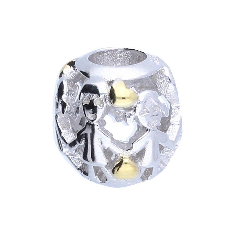 Durchbrochener Anhänger für ein Perlenarmband, Kombination aus 925er Silber, rhodiniert und vergoldet, Junge, Mädchen, Herz.