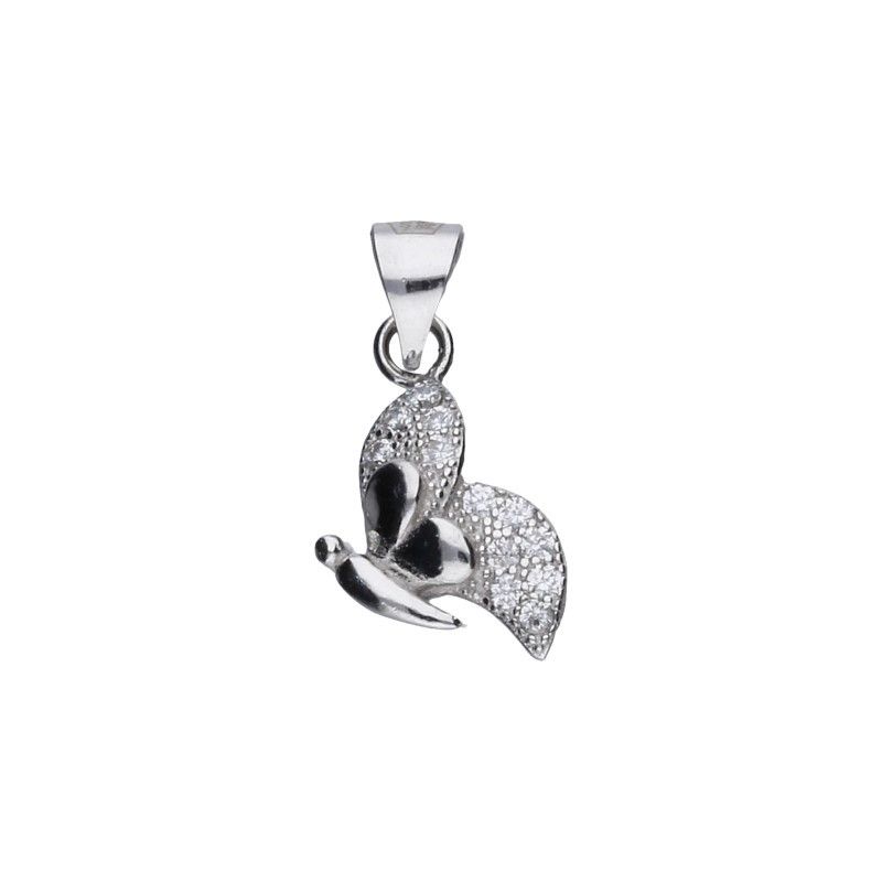ANHÄNGER AUS 925er SILBER, RHODINIERT, ABMESSUNGEN OHNE BAND 1,1 cm x 0,7 cm, WEISSER ZIRKONIA, SCHMETTERLING.