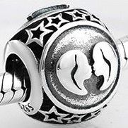 Der Anhänger passt zu modularen Perlenarmbändern mit einem Durchmesser von 3 mm, 925er Silber, rhodiniert, Sternzeichen, Zwillinge.