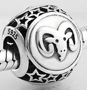 Der Anhänger passt zu einem modularen Perlenarmband mit einem Durchmesser von 3 mm, 925er Silber, rhodiniert, Sternzeichen, Widder.