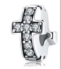 Der Anhänger passt zu einem modularen Perlenarmband mit einem Durchmesser von 3 mm, 925er Silber, rhodiniert, weißer Zirkon, Kreuz.
