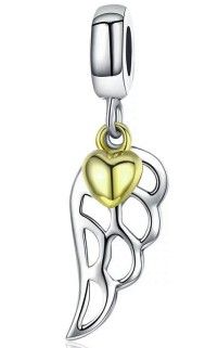 PERLEN-ARMBAND-ANHÄNGER, 925 SILBER, RHODINIERT. FLÜGELMOTIV MIT EINEM HERZ, plattiert mit 585er Gold, Maße: 8 mm x 20 mm. Passend für modulare Standardarmbänder mit einem Durchmesser von 3 mm.