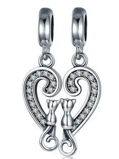 ARMBANDANHÄNGER, KATZEN SITZEN AUF DEM HERZ, DER ANHÄNGER BESTEHT AUS ZWEI TEILEN – SIE KÖNNEN EINS EINEM LIEBTEN PERSONEN GESCHENKEN, 925 SILBER, RHODINIERT, WEISSER ZIRKONIA. Passend für modulare Standardarmbänder mit einem Durchmesser von 3 mm. ABMESSUNGEN EINES ELEMENTS 13MMX5MM.