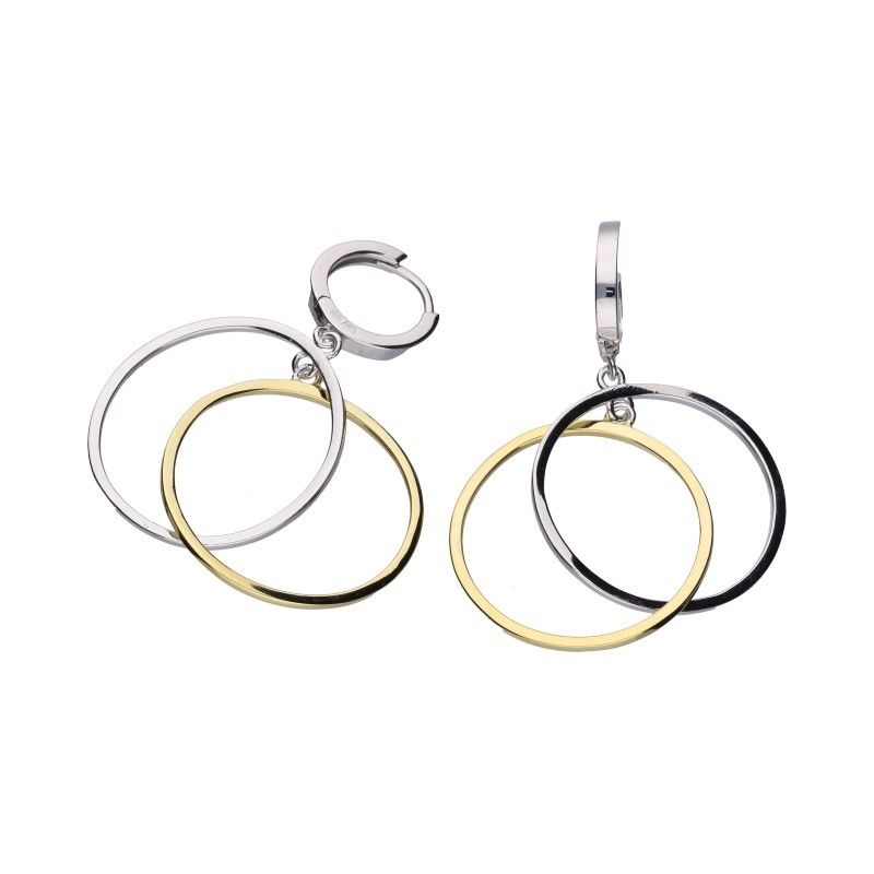 OHRRINGE AN EINEM RING MIT EINEM DURCHMESSER VON 13 mm, EINE KOMBINATION AUS 925er SILBER, RHODINIERT MIT VERGOLDETEM 24 KARAT GOLD, RINGE MIT EINEM DURCHMESSER VON 25 mm.