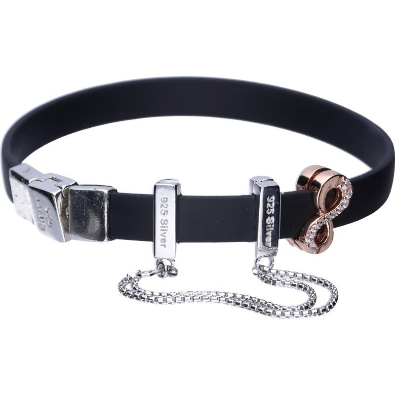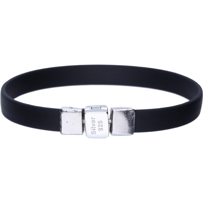 FLACHES PERLENARMBAND, 925 SILBER RHODIUMBESCHICHTET, SCHWARZES SILIKON, LÄNGE 18 cm, SILBERGEWICHT 4,9 G.