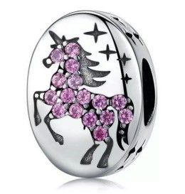 PERLENANHÄNGER PASST ZU MODULARARMBÄNDERN MIT EINEM DURCHMESSER VON 3 MM, 925 SILBER, RHODINIERT, EINHORN.
