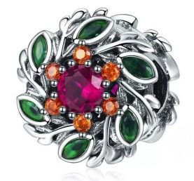 PERLENANHÄNGER, GEEIGNET FÜR MODULARE ARMBÄNDER MIT EINEM DURCHMESSER VON 3 MM, 925 SILBER, RHODIUMBESCHICHTET, BUNTES ZIRKONIA, BLUME.