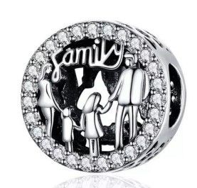 Durchbrochener Anhänger für ein modulares Perlenarmband, Durchmesser 3 mm, 925er Silber, rhodiniert, weißer Zirkon, FAMILIE, FAMILIE.