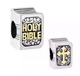 PERLENANHÄNGER GEEIGNET FÜR MODULARE ARMBÄNDER MIT EINEM DURCHMESSER VON 3 MM, KOMBINATION AUS 925er SILBER, RHODINIERT UND 24 KARAT VERGOLDET, HEILIGE SCHRIFT.