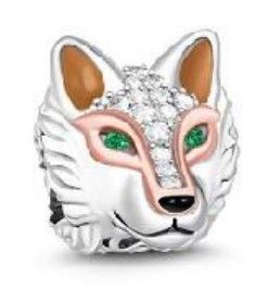 PERLENANHÄNGER, GEEIGNET FÜR MODULARE ARMBÄNDER MIT EINEM DURCHMESSER VON 3 MM, EINE KOMBINATION AUS 925ER SILBER, RHODIUM UND VERGOLDET, BUNTEM ZIRKONIA, WOLF.