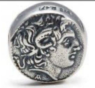 ARMBANDANHÄNGER, MÜNZE - MÄNNERGESICHT, MOTIV AUS DER ALTEN WELT. 925er Silber, rhodiniert. Passend für modulare Standardarmbänder mit einem Durchmesser von 3 mm. ABMESSUNGEN 10MMX8MM.