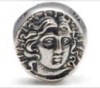 ARMBANDANHÄNGER, MÜNZE - FRAUENGESICHT, MOTIV AUS DER ALTEN WELT. 925er Silber, rhodiniert. Passend für modulare Standardarmbänder mit einem Durchmesser von 3 mm. ABMESSUNGEN 10MMX8MM.