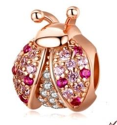 PERLEN-ARMBANDANHÄNGER, DURCHMESSER 3 MM, 925 SILBER, ROSA VERGOLDET, WEISSER UND ROSA ZIRKONIA, MARIENKÄFER.