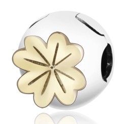 ÖFFNUNGSPERLEN-ANHÄNGER, PASST ZU 3-MM-MODULARARMBÄNDERN, 925er SILBER, RHODIUMBESCHICHTET UND VERGOLDET MIT 24 KARAT GOLD, VIERBLÄTTRIGES KLEEBLATT.