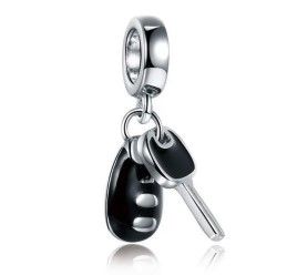 PERLENANHÄNGER FÜR EIN MODULARES ARMBAND MIT EINEM DURCHMESSER VON 3 MM, 925 SILBER RHODINIERT, SCHWARZ EMAILLE, SCHLÜSSEL FÜR IHR NEUES AUTO.