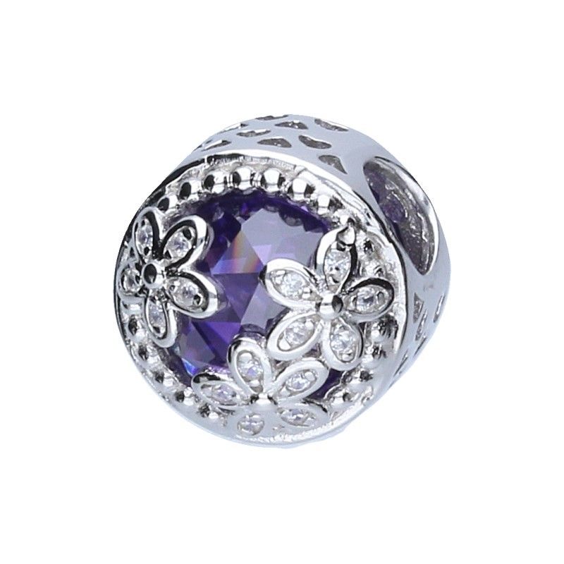 ANHÄNGER FÜR EIN MODULARES PERLENARMBAND, DURCHMESSER 3 MM, 925 SILBER, RHODINIERT, FACETTIERTER AMETHYSTSTEIN, BLUMEN.