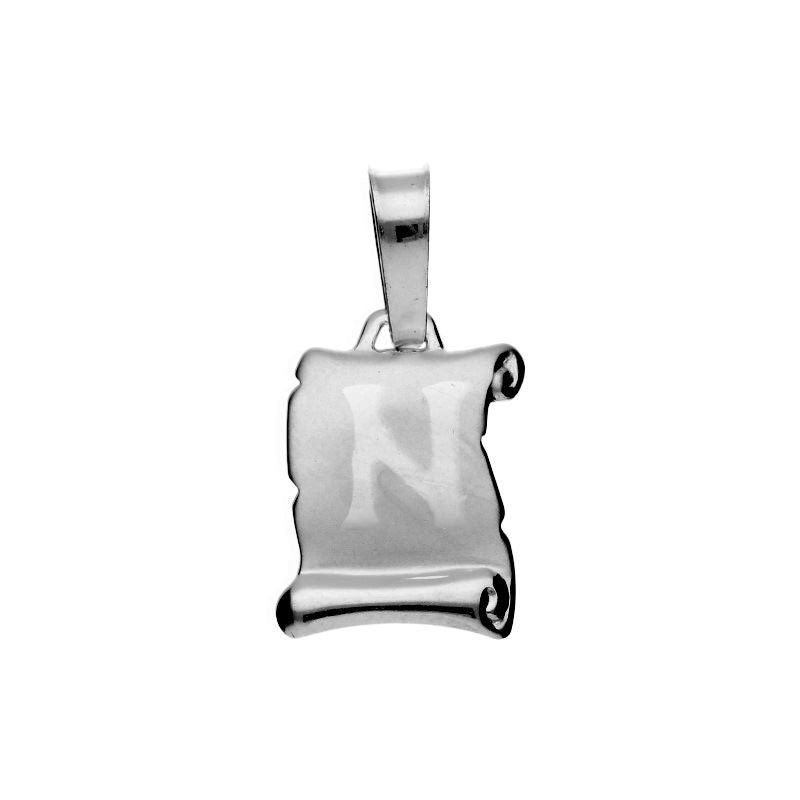 ANHÄNGER, 925 SILBER, RHODINIERT, TEILWEISE MATTIERT, ABMESSUNGEN OHNE BAND 15MM X 12MM, BUCHSTABE N AUF PAPYRUS.