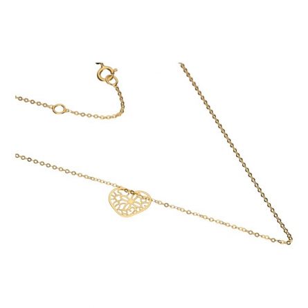 Durchbrochene Halskette, 585er Gold, Länge 42 cm + 3 cm Verlängerung, durchbrochenes Herz, Größe 12 mm x 9 mm, 14 Karat.